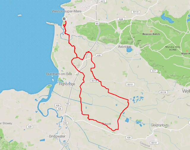 The plan was to have a cup of tea at Wollavington church after about 16 miles and continue on to Godney before tea and cake at Sweets Cafe near West Hay. At the church, met a local old couple just leaving who explained tea and cake is only served on Wednesdays and after the Sunday morning service. That blew that plan out of the water. Continuing on through Catcott and Shiplake, we took a shorter way to Sweets missing out the extra Godney Loop. After tea and cake took a fairly direct route back to Weston via Mark and east Brent this time heading into the NW wind. The rain did get a bit heavier as we approached Weston and we all finished up with over 40 miles clocked. Personally I was just under 44 and had achieved 5 miles above the weeks target.